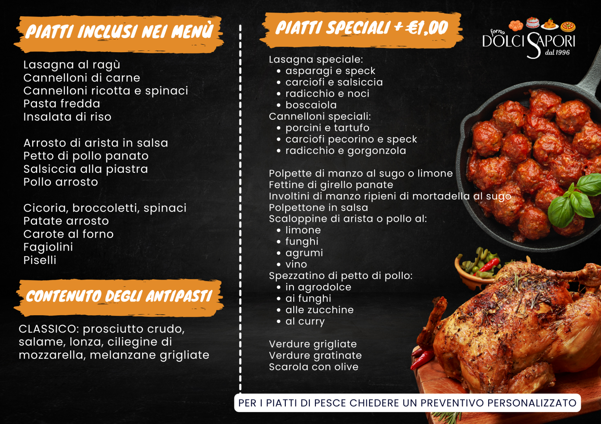 Scopri i nostri menù pranzo e cena da asporto, pensati per chi vuole mangiare bene anche fuori casa. Piatti freschi, preparati ogni giorno con ingredienti di alta qualità e tutta la cura artigianale del nostro forno. Gusto autentico, porzioni generose e prezzi sempre accessibili.